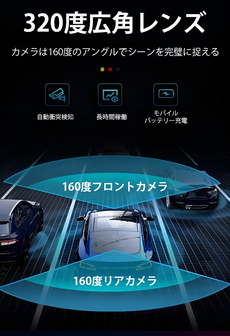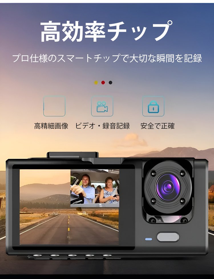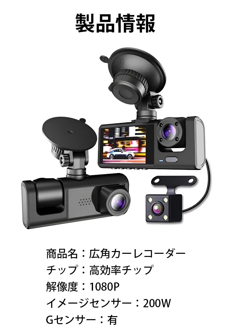 【バックカメラつき】3カメラのカーレコーダー吸盤式